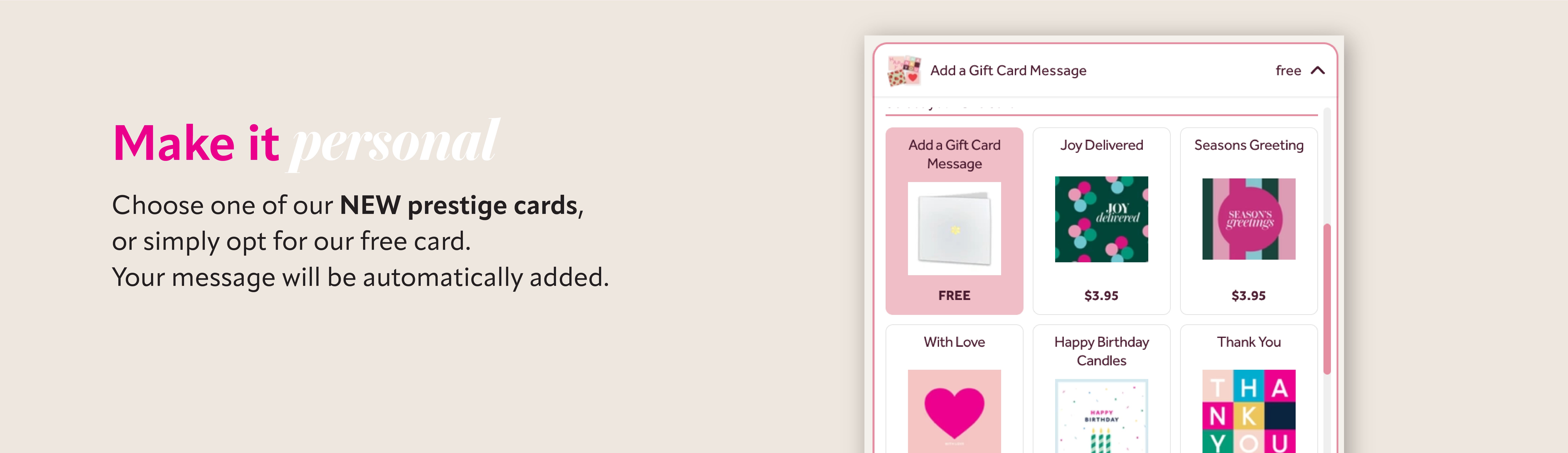 A custom ribbon on a gift adds a personalised and thoughtful touch. It can be created with a special message, announcement or logo, making the gift extra memorable