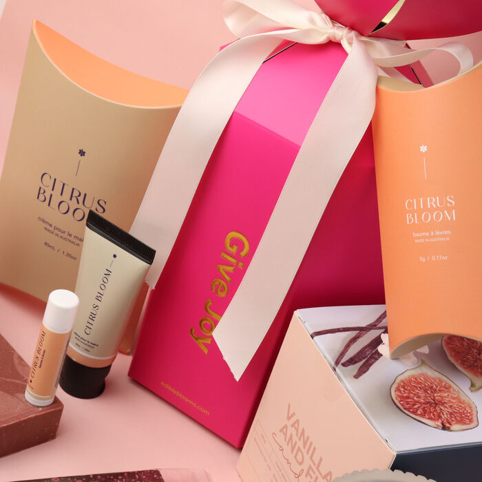 Our gifts can even be personalised to make your loved one feel super special with a foil printed ribbon with your preferred message or a swing tag featuring your photo or ay corporate logo.
