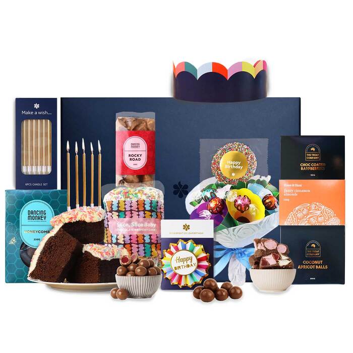 Featuring a full-sized chocolate cake, in our gorgeous signature packaging, we love this birthday gift!