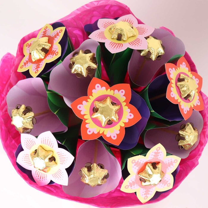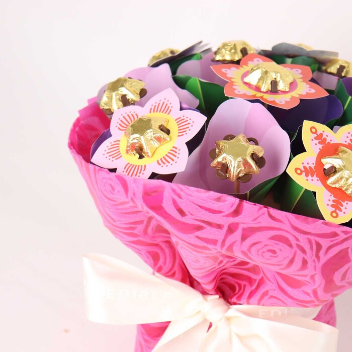 A stunning flower bouquet filled with 11 decadent and creamy Chocolatier milk chocolates, this Bright Flower Bouquet Small is sure to deliver a smile.