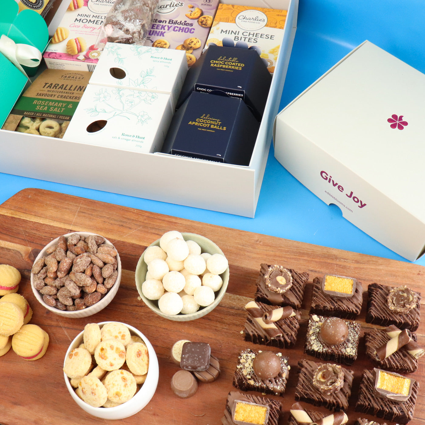 Our Nutty Brownie combined with our Gourmet Gift Hamper Luxury so you can save! Brownie gift pack is everyone's new favourite treat from Edible Bloom the perfect mix of sweet, savoury, and indulgent brownie bites.