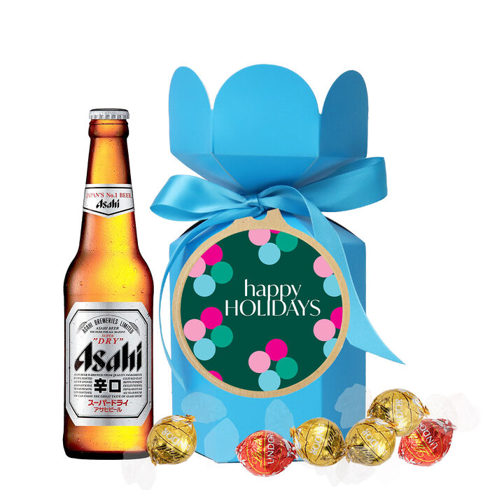 Whether you're looking for a small Christmas gift or to make a group gift, this popular beer gift is the perfect way to do it! Featuring a bottle of Asahi and gourmet Lindor chocolates. Perfect present for last-minute festive gifting!