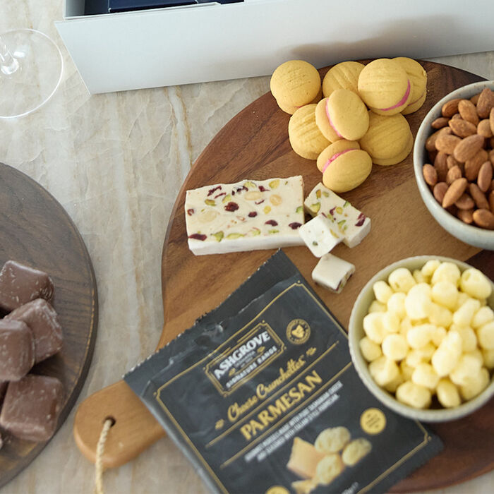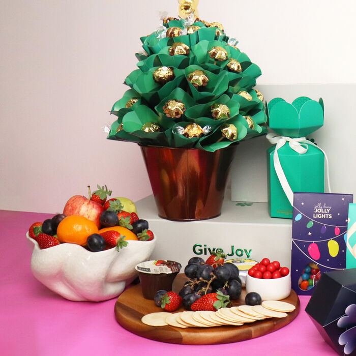 Elevate your gifting game with our Festive Bundle – Three layers of delicious hamper treats. Perfect for family gatherings or office occasions. Each layer unwraps a different treat from cheese and crackers, to fresh fruit to sweet and savoury treats that can be saved for later. Destine to impress friends, family, or cherished clients.