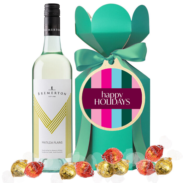 This Christmas White Wine Gift Box is perfect for anyone who loves a bottle of locally sourced South Australian Bremerton white wine, plus creamy milk and white chocolate Lindt Balls. All packaged in a beautiful gift box,