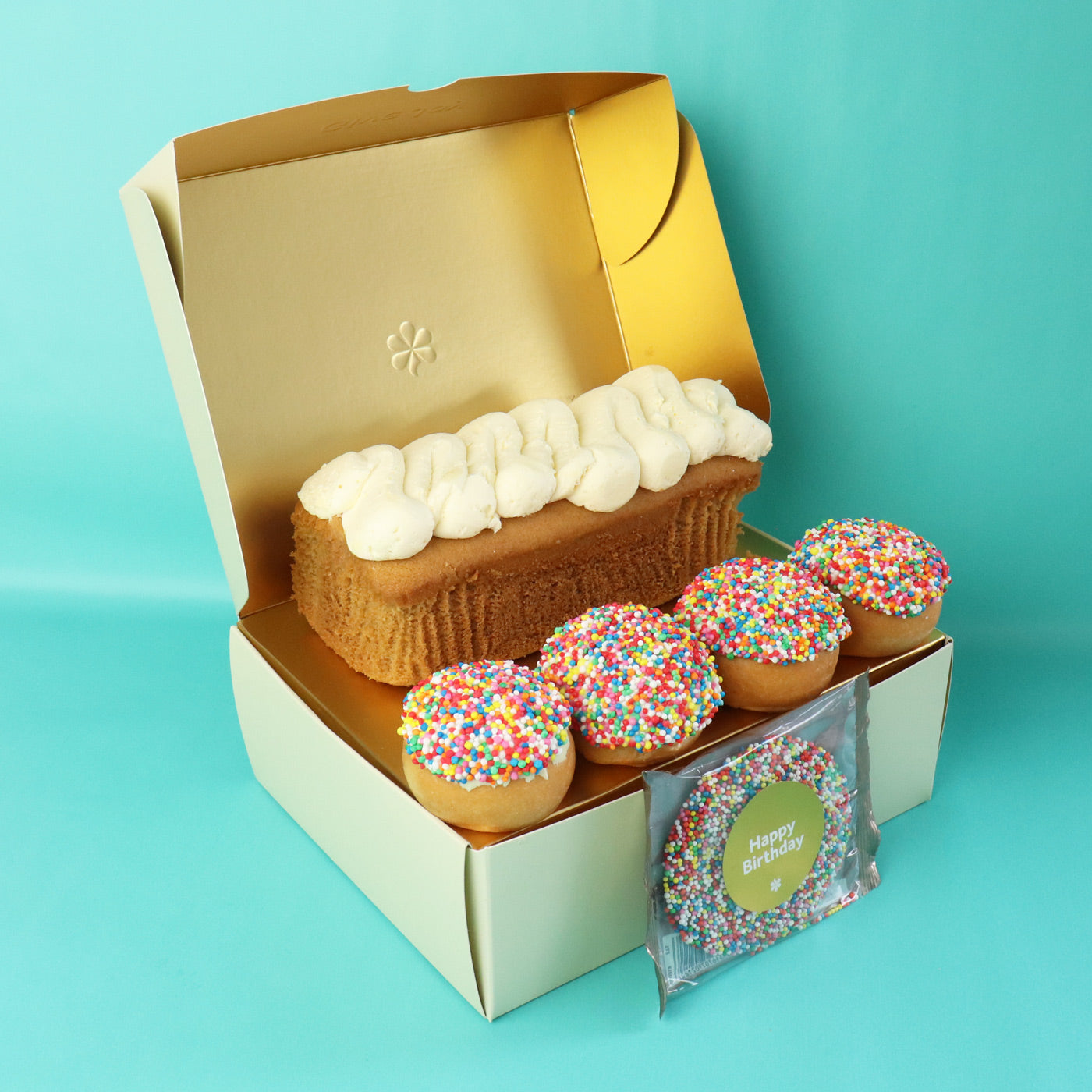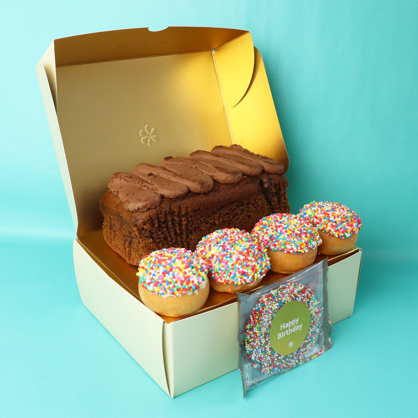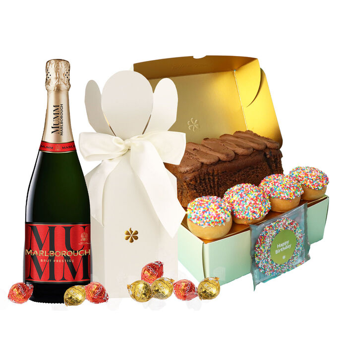 It's not a birthday without a bottle of bubbless! Hip-hip hooray for more delicious and yummy treats on your birthday, they're colourful and fun! This little treat box is so fun, it'll be your go-to gift to give. From donuts, to sprinkles, to speckles, lindt and french champagne - what more could you wish for!