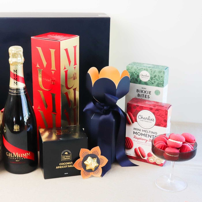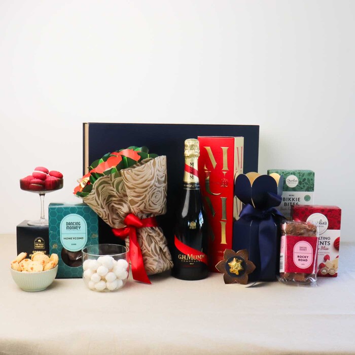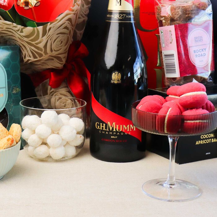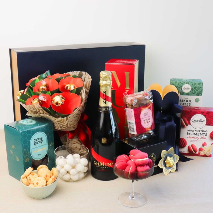Luxury gift hamper at its best, the combination of G.H.Mumm Champagne with a milk chocolate Lindt mini bouquet creates a unique gift hamper. This hamper is a combination of gorgeous gifts all within one stunning hamper, your hamper includes a mix of various sweet treats...