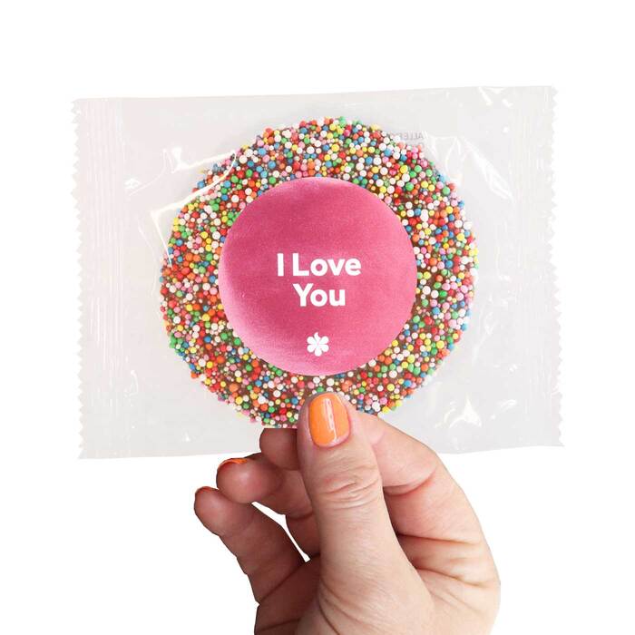 Add a little extra love to any gift with 'L Love You' large chocolate speckle
