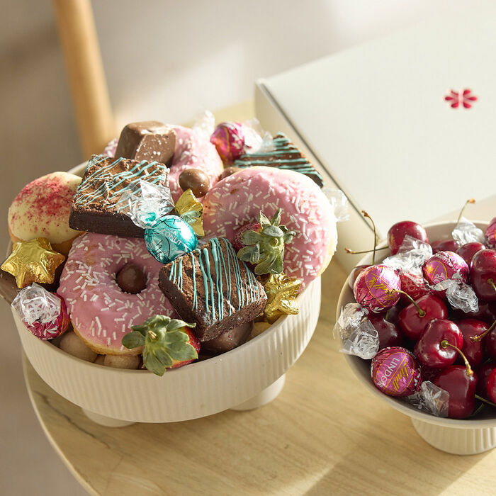 Indulge in the sweetest of Christmas flavours with our Jolly Christmas Donuts. These delectable cute treats blend the rich flavours of assorted donuts and mixed chocolate treats with fresh strawberries and the refreshing peppermint swirl of candy canes, creating a festive fusion that will dance on your taste buds. Each bite is a holiday delight, delivering a perfect balance of sweetness and minty freshness.