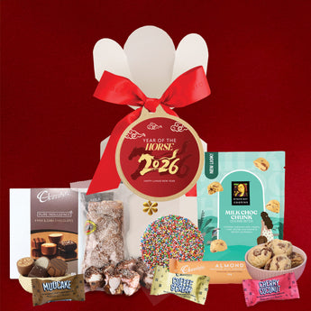 Our Lunar New Year Chocolate Gift Box is the perfect gift box as a small gift or to have on hand to celebrate the Year of the Horse. Hand filled with chocolatey good vibes, and the finest quality products. Inside this stunning gold foil gift box (either navy or taupe on the outside) you will find