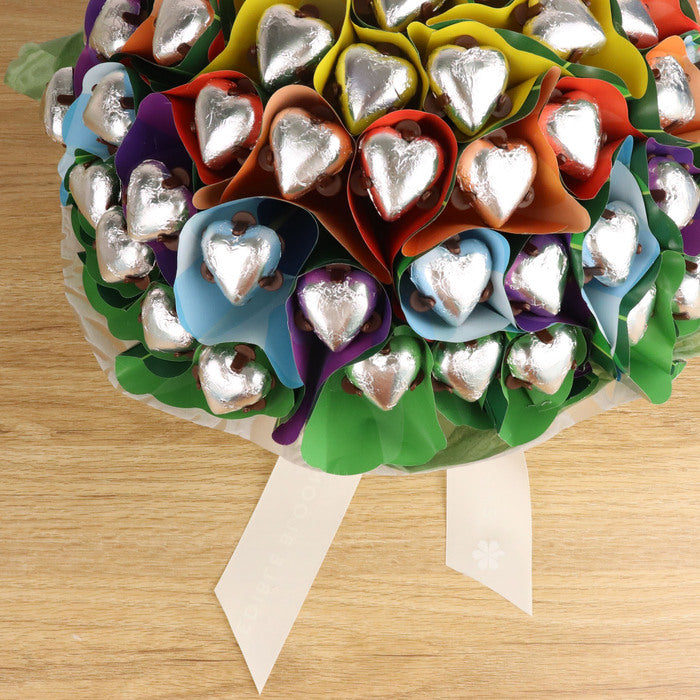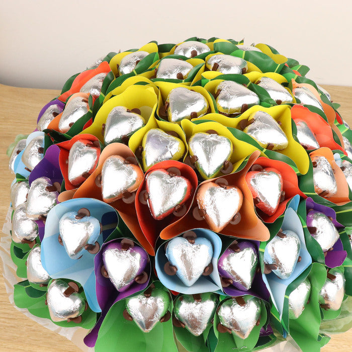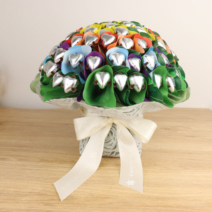This was such a great option to flowers as many people can share in the chocolates, no issues with pollen allergies, low maintenance (no dropped foliage or watering) and the rainbow packaging is bright and happy!