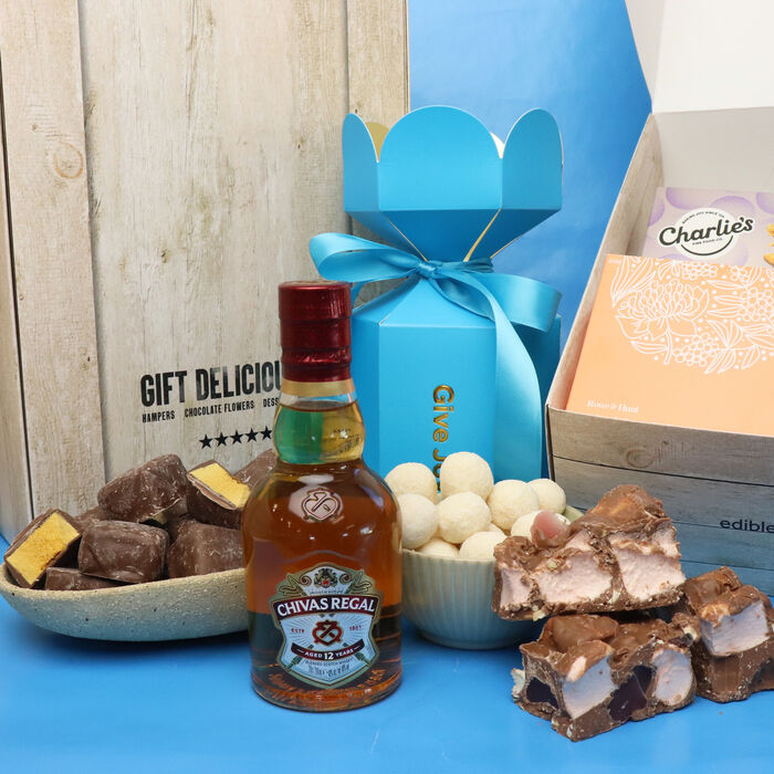 Meet the Gourmet Scotch Hamper by toasting to Dads, Uncles and Grandfathers! Our Gourmet Scotch Hamper comes with Chivas Regal Premium Scotch Whiskey, matured for 12 years with honey, hazelnut notes and a long creamy finish. The hamper is packed with gourmet goodies and chocolates available for same-day delivery in all major cities.