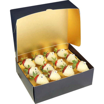12 fresh strawberries dipped in couverture white Belgian milk chocolate with white chocolate detail*