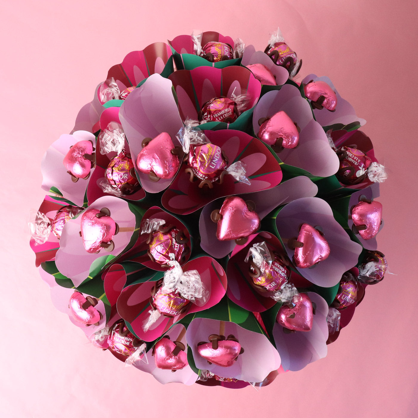 Enjoy Lindt's NEW favourite flavour - Raspberry, combined with creamy milk chocolate hearts. All packaged in the prettiest of dusty pinks, mauve and taupe grift wrap to make a beautiful bouquet.