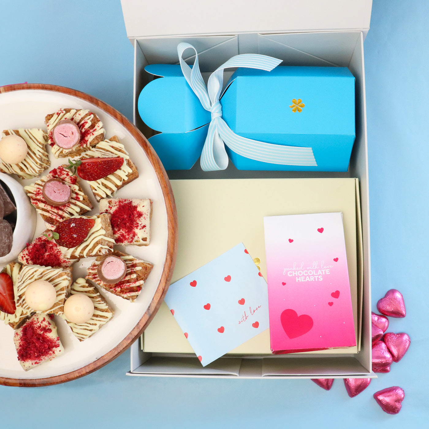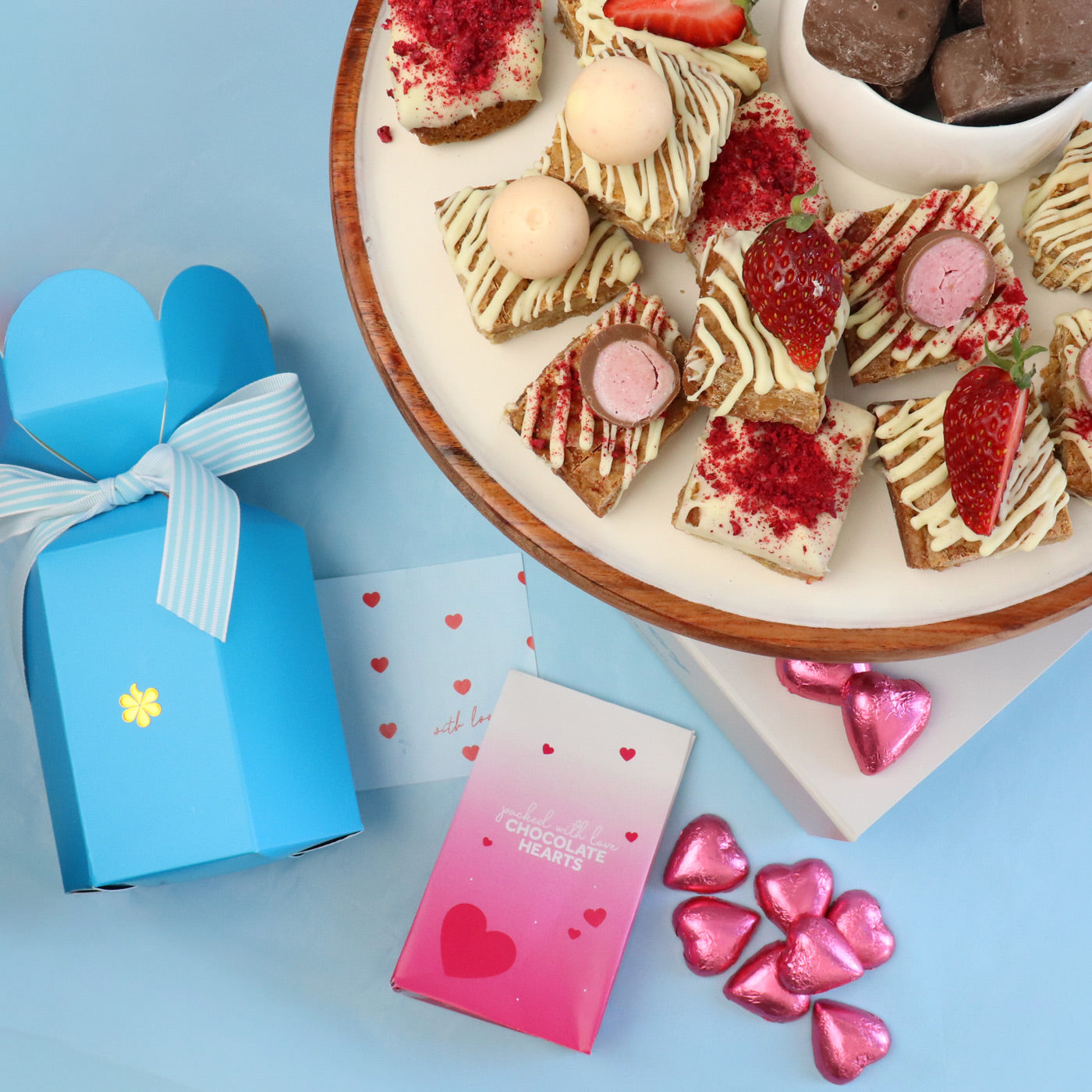 Filled with fresh, blonde brownie treats to eat on Valentine's Day, and sweet treats to savour for later.