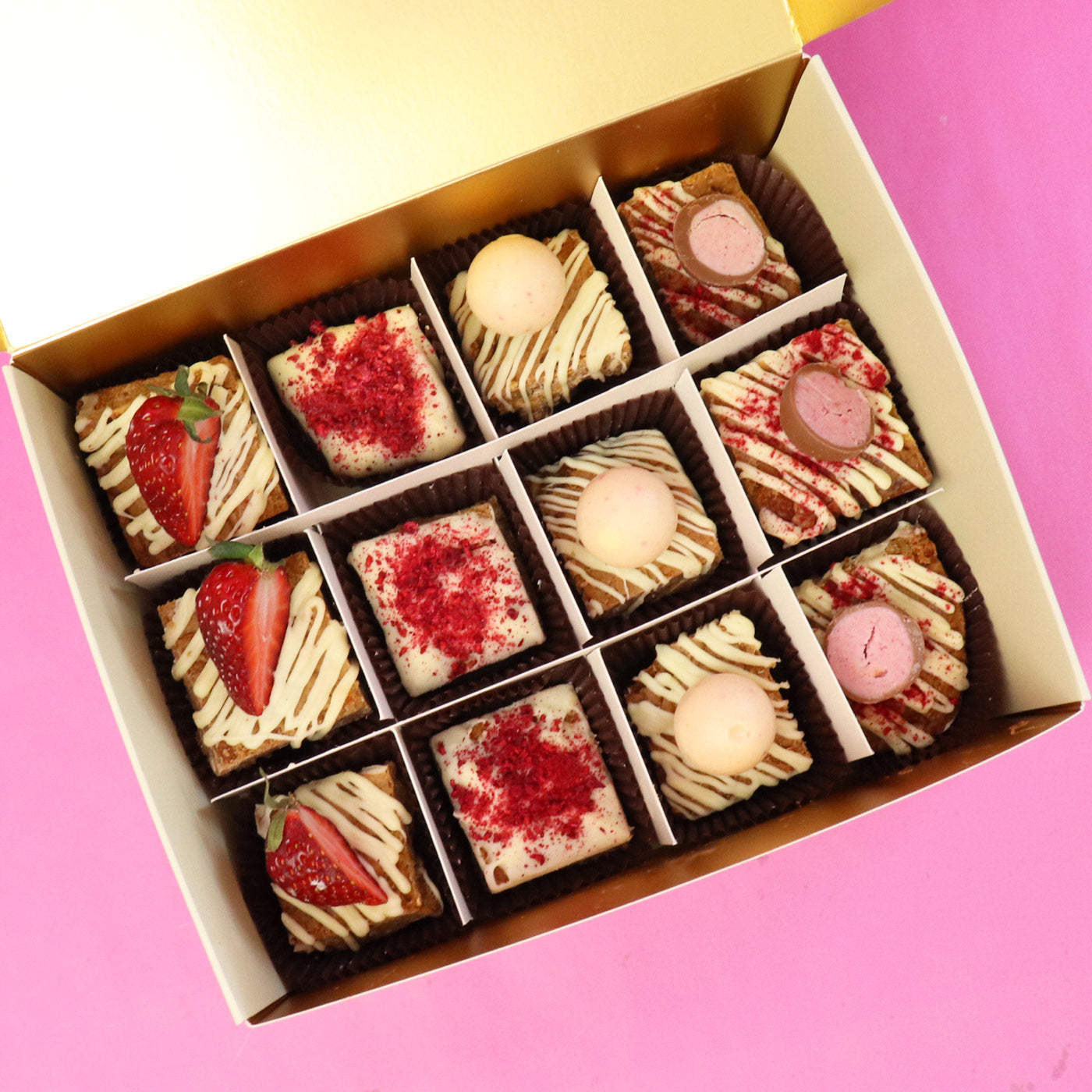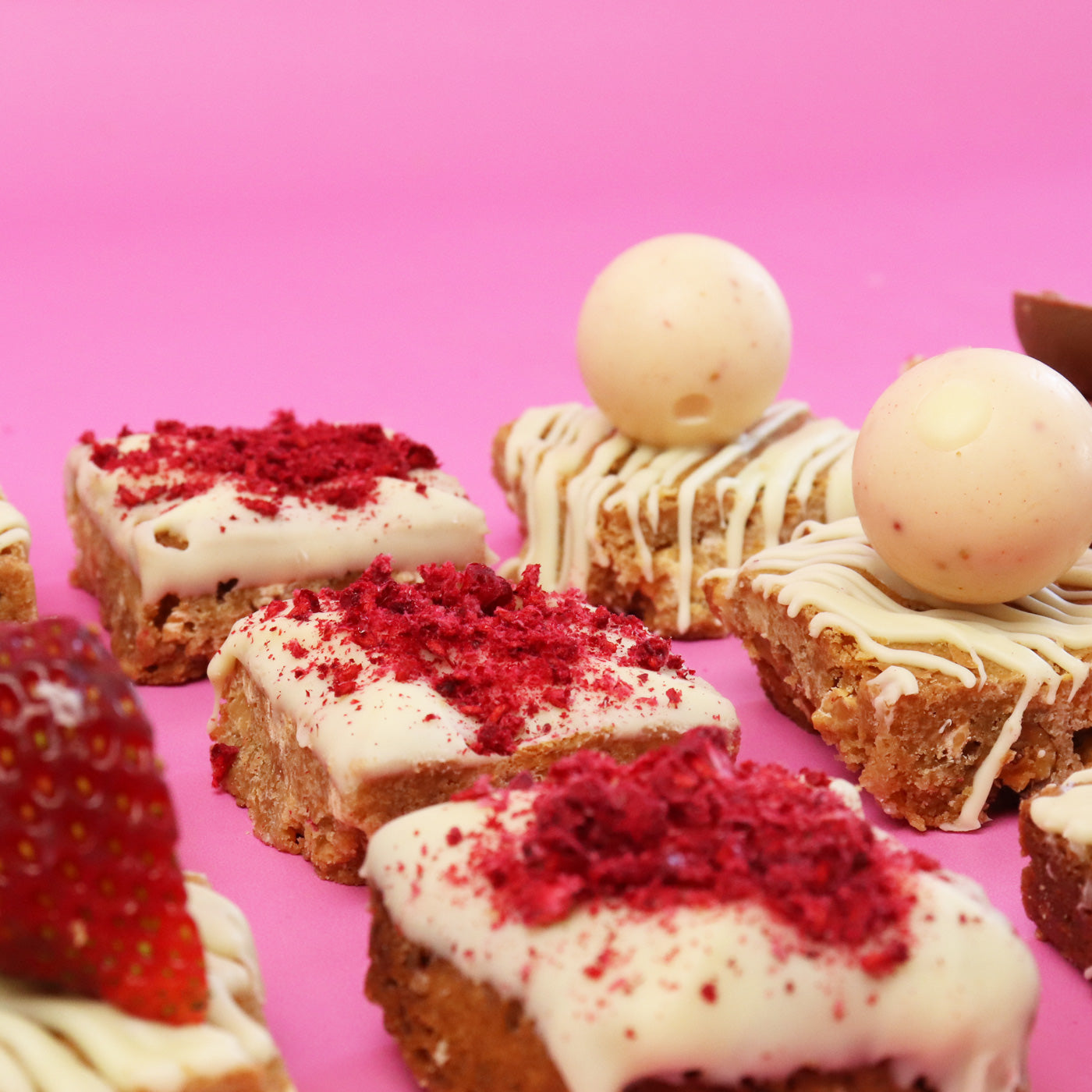 Fall head over heels for our Valentine Blondie Brownie! A dreamy golden blondie, packed with nutty goodness and baked to perfection. Whether you’re sharing the love or sending the love, this is one sweet crush you won’t want to resist.