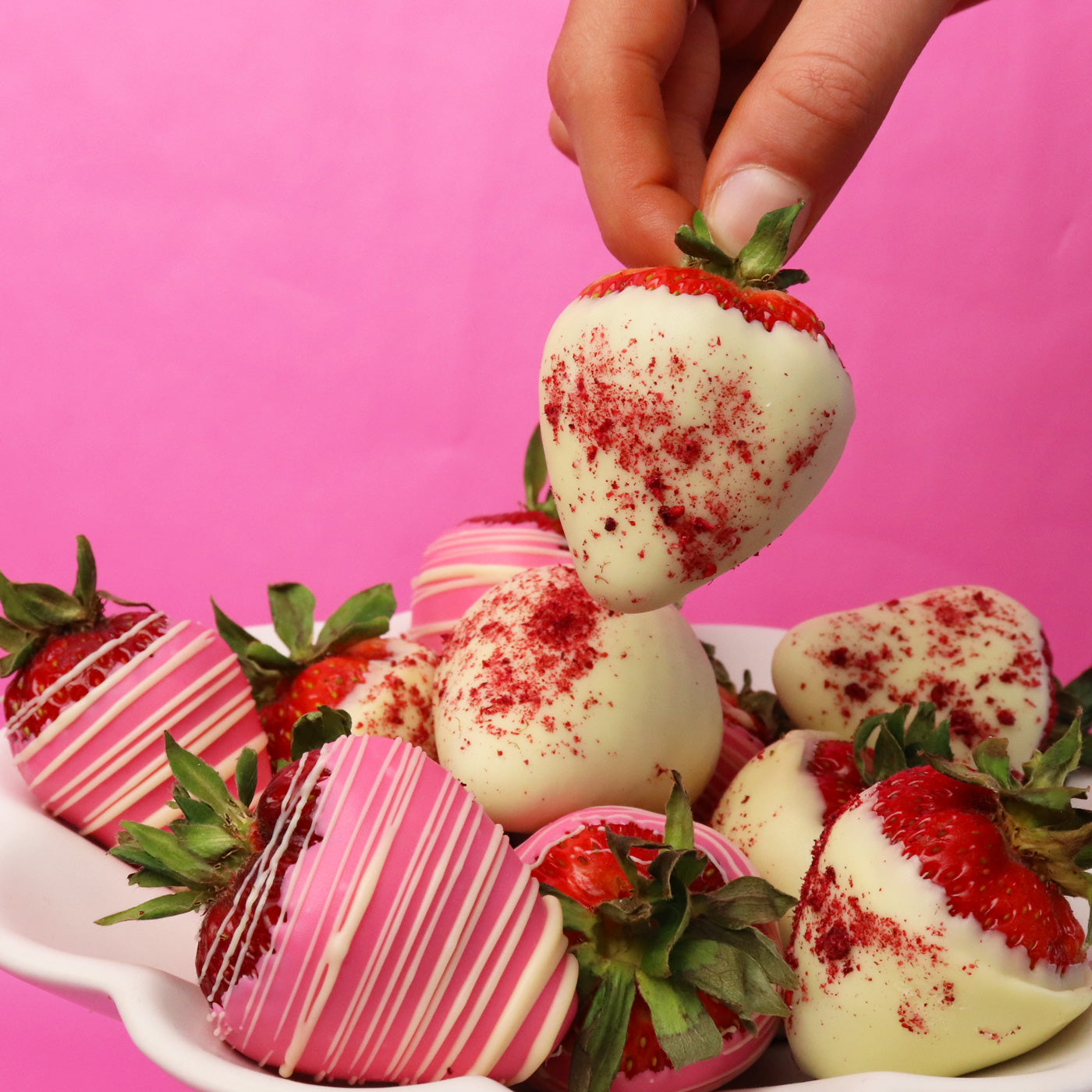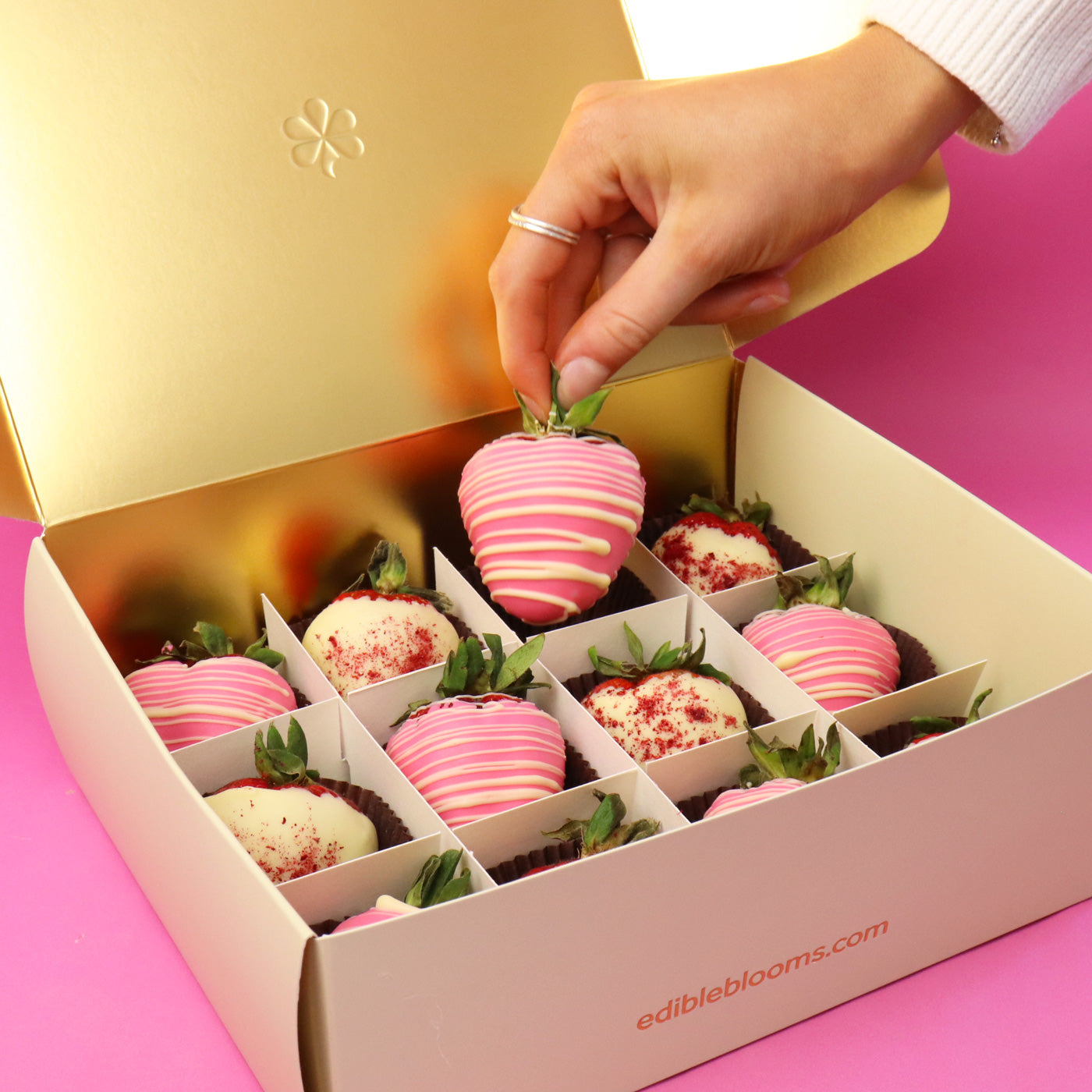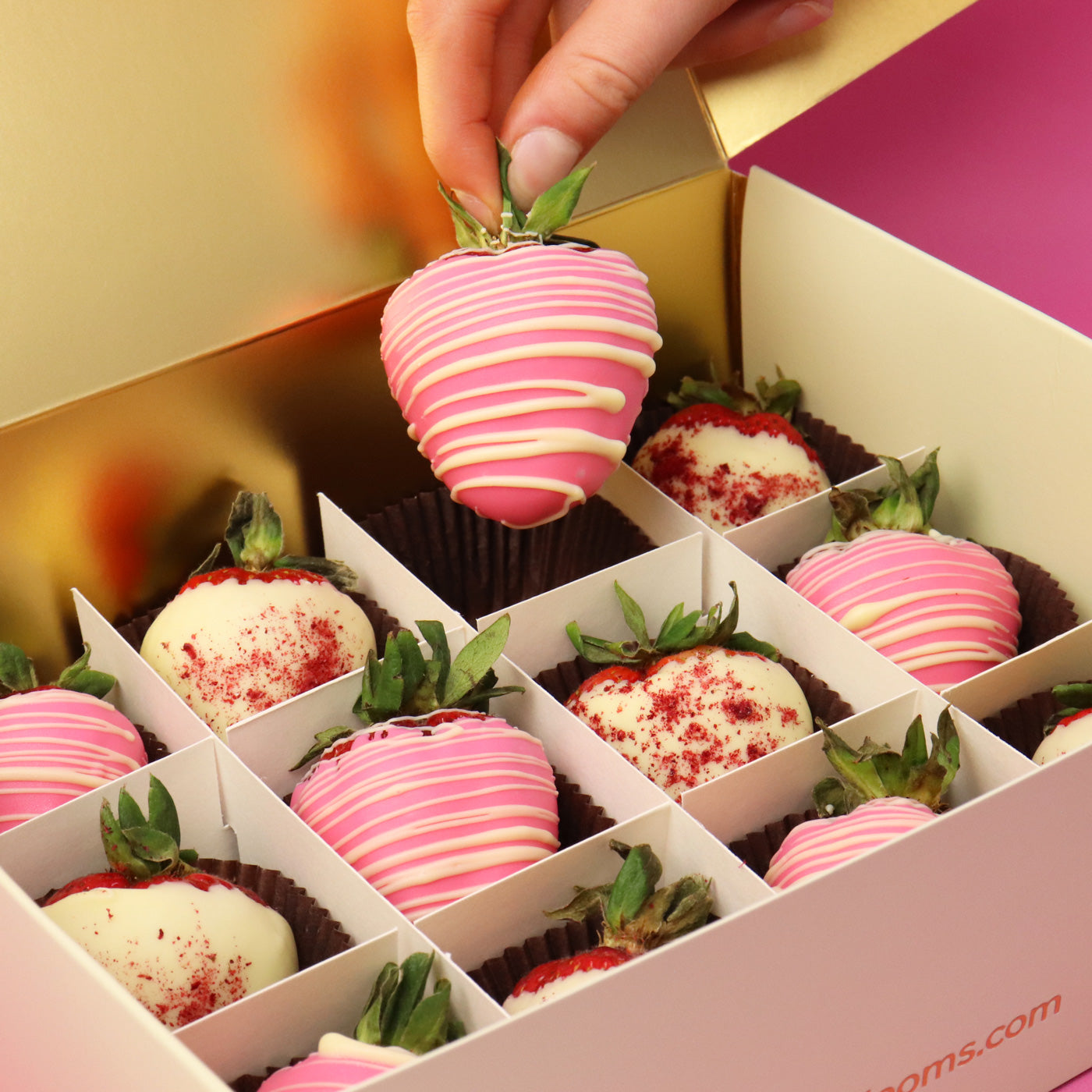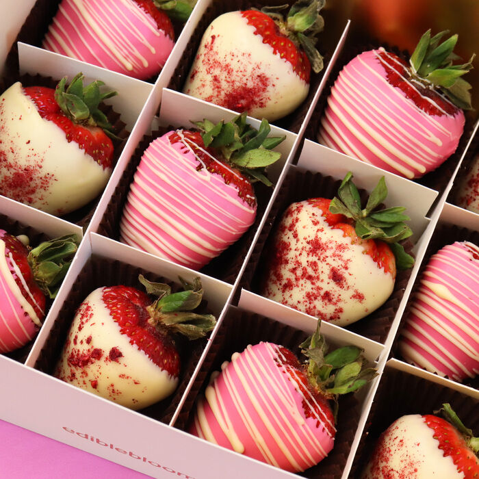 Valentine's Day chocolate-dipped strawberries delivered straight to their door. Our bestselling chocolate strawberries have taken a romantic turn but kept their fresh, delicious flavours, covered in white milk chocolate & raspberry crumb